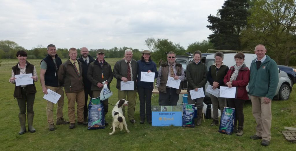 The Utility Gundog Society held it’s first Spaniel Trial of the 2017/18 season, a Novice Springer Stake for 16 dogs at Ditchingham Hall, Suffolk by very kind permission of the Earl & Countess Ferrers and Headkeeper Nick Clitheroe. We were delighted to be invited to this beautiful Estate, the first time a Spaniel trial has been held in it’s grounds. The Woodland is perfect for Spaniels and the team of Guns supplied by the Keeper were excellent. A mixed bag of Woodcock, Pheasant, Hare and Partridge tested the novice dogs with a few going by the wayside on the Woodcock especially. The Judges, Chris Thurston-Woolnough and Arthur McGregor were fair and especially helpful with some very nervous novice handlers. They were in perfect agreement and were able to award places without a run-off. This is the first win for Kevin Doughty (who is an A Panel Retriever Judge!!) in a Spaniel Trial and he was delighted.